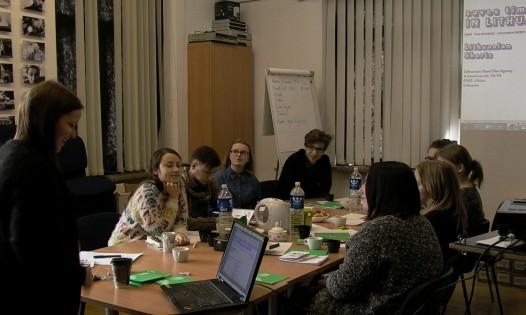 During the workshop students were introduced to the key concepts of film programming. On the first day the artistic director of Vilnius Film Shorts Marija Razgutė presented the main principles of programming for a short film festival. She explained about the selection process (e.g., out of 1500 films), different programming criteria, goals of the film festival programme and its communication campaign. Her seminar was followed by a film viewing session. The workshop participants watched about 8 short films from the competition programme of Vilnius Film Shorts 2014, discussed about them and selected three-four titles. The discussion was facilitated by a film critic Narius Kairys. The next day young film programmers were welcomed by a film programmer of Skalvija Cinema Center and a curator of Vilnius Documentary Film Festival Sonata Žalneravičiūtė. She introduced students to the film programming for an art-house cinema theatre. The film programmer showed examples of a monthly and a weekly repertoire of Skalvija and shared her insights about the right selection, combination and communication of films during different seasons. S. Žalneravičiūtė also revealed her predictions for the behaviour of the audience of Skalvija.