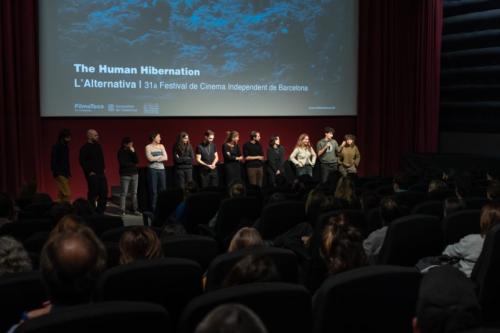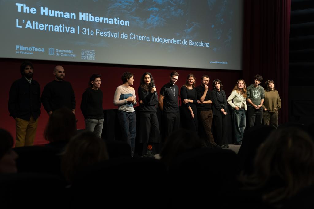 A The Human Hibernation es desdibuixen els límits entre espècies i la natura impregna tot allò construït per l’humà. Una mirada sensorial per imaginar un futur en que les persones no són el centre. La sessió va anar acompanyada de presentació de la cineasta Anna Cornudella i diàleg amb l'equip de la pel·lícula.